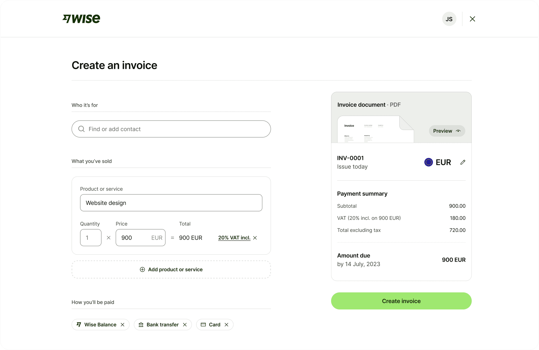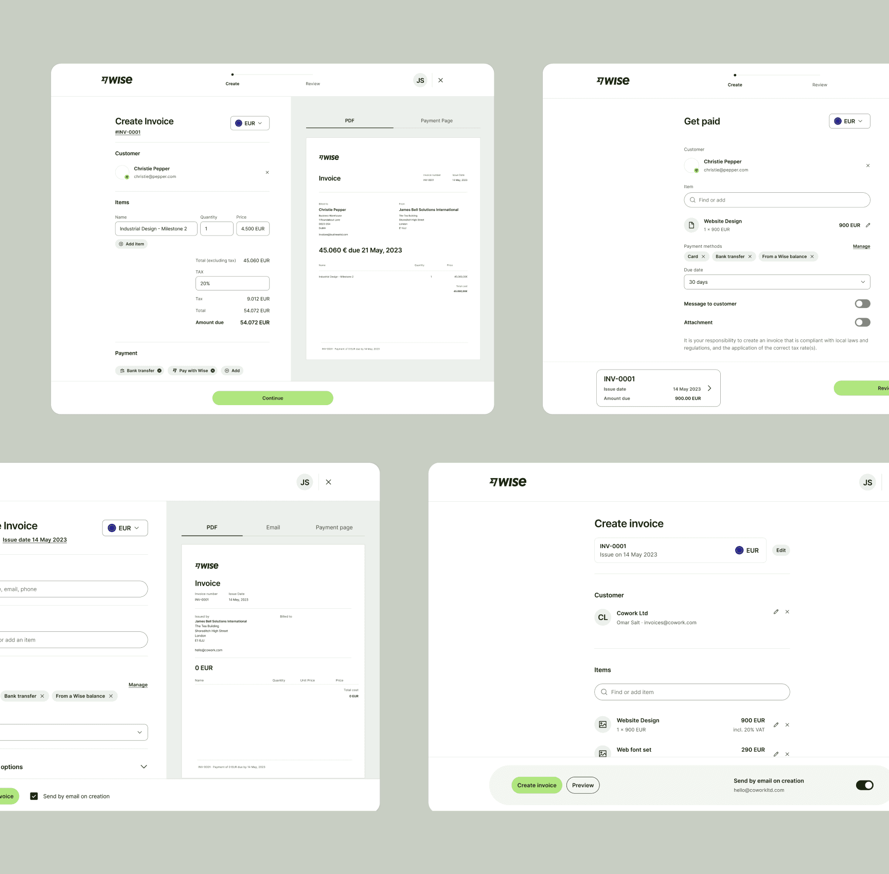 We rolled out Wise Invoicing gradually to 100% of eligible Wise Business accounts with GBP, EUR, AUD, NZD, SGD, and USD account details between February and March 2024.